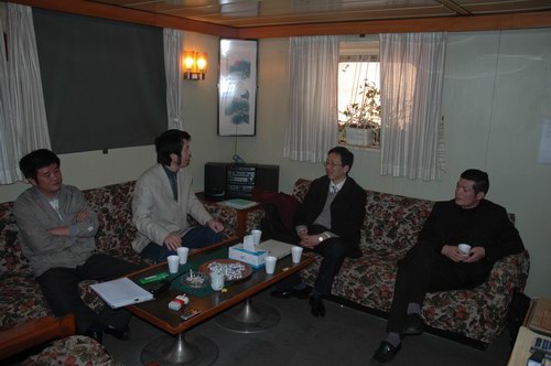 董總一行首先進行了現場檢查,詳細了解“明州20”輪安全、生產、管理及船員生活情況,并與船上領導進行了親切座談。董總對“明州20”輪2009年各項工作取得的成績表示肯定,并提出了要求:一是面對嚴峻的市場形勢,全體船員必須樹立信心,抓安全、促生產;二是加大船舶自修保養力度,使船風船貌建設上新臺階;三是積極開展“增收節支、降本增效”競賽活動,創造更大的經濟效益;四是切實做好今年春運期間船舶的安全營運,努力營造“和諧、安全、優質、有序”的春運環境;五是針對當前電煤運輸緊張狀況,牢固樹立大局意識,發揚“舍小家,為大家”的奉獻精神,全力以赴做好電煤運輸生產。