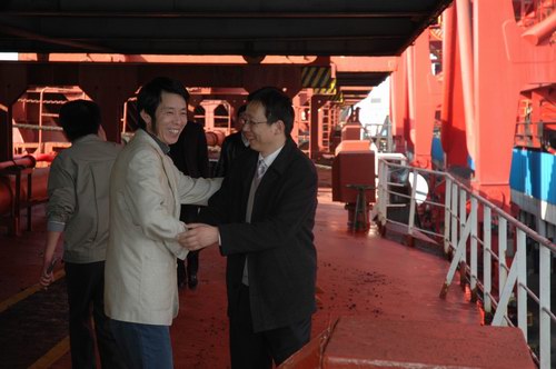 2010年1月26日下午,公司總經理董軍率有關部門負責人來到玉環電廠碼頭,親切慰問正在卸貨作業的“明州20”輪全體船員,并送去新年慰問品,感謝全體船員的辛勤工作。