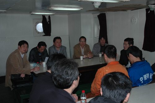 董總一行在船長、輪機長等陪同下檢查了主甲板、駕駛臺、機艙等場所,詳細了解了“明州2”輪安全、生產(chǎn)、管理及船員生活情況,并與船上領(lǐng)導(dǎo)進行了座談交流。董總充分肯定了“明州2”輪為公司發(fā)展作出的貢獻,并提出了要求:一是做好船員的穩(wěn)定工作;二是克服過渡期的麻痹思想,要繼續(xù)抓好設(shè)備維修和季節(jié)性安全工作;三是要切實抓好上海世博會期間的安保工作,嚴格各項規(guī)章,努力構(gòu)筑世博安保水上安全屏障。