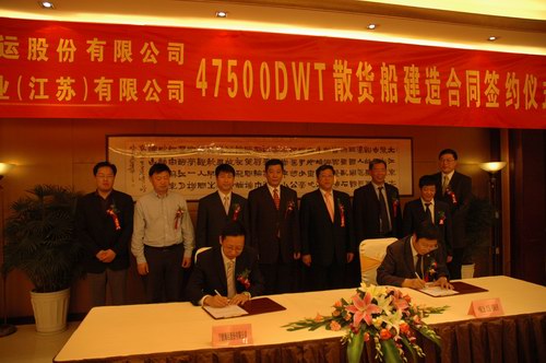 2010年5月28日,公司新建2+1艘47500噸散貨船在江蘇揚州舉行簽約儀式。公司董事長管雄文參加了簽約儀式并致辭。公司總經理董軍代表船東方在建造合同上簽字。按照合同,船舶將于2011年底陸續交付。