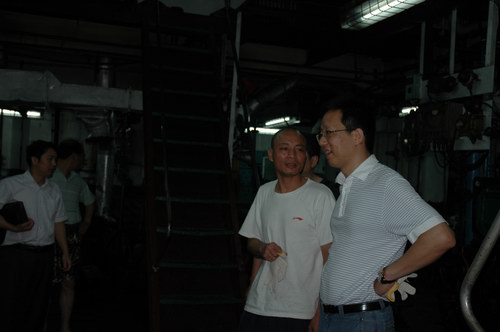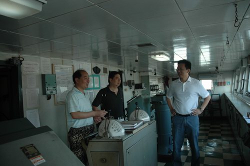 上船后,董總一行在船長、輪機長的陪同下,檢查了船舶駕駛臺、機艙、船員住所等,詳細詢問了船上各項工作開展情況,并與船上同志進行了座談。董總指出,“明州19”輪船員克服船小、航次緊、生活條件相對較差等困難,較好地完成了各項生產任務。希望全體船員在船長的帶領下,進一步加大船舶維護保養力度,抓好季節性安全管理,尤其是防抗臺風和防暑降溫工作,強化船舶基礎管理,創造和諧的工作、生活環境,為公司發展作出新的貢獻。