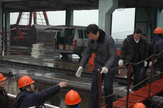 2011年1月19日下午,正靠泊在嘉興電廠卸貨作業的“明州67”輪船員感受到了濃濃春意,公司總經理董軍率相關部門負責人冒雪對他們進行了節前慰問。