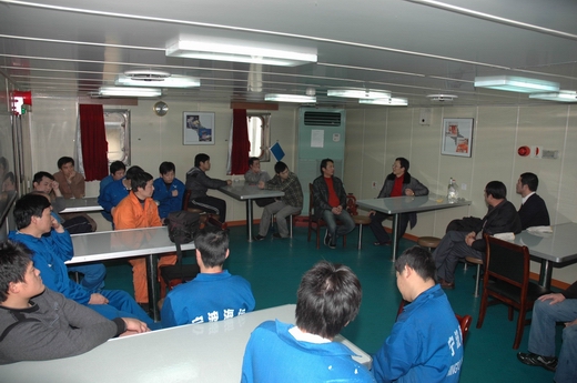 今天是春運第一天,就春運期間的工作,董總提出了四點希望和要求。一是確保春運期間的安全穩定,船舶是安全生產的主體,船員是財富的直接創造者,做好安全工作既是對本人負責,也是對集體負責。二是繼續發揚艱苦奮斗連續作戰的工作作風,加強自修保養,多裝快跑,為公司快速發展作出貢獻。三是做好節能降耗工作。現在油價居高不下,節能降耗是公司最大的成本節約,全體船員都要一如既往地做好營運節能和技術節能工作,努力降低油耗水平。四是希望大家注意身體,并預祝大家春節愉快,在新的一年里工作順利,萬事如意。