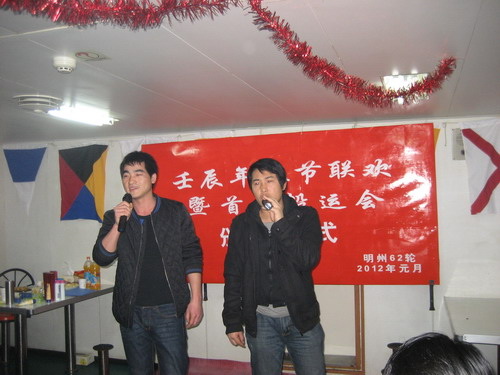 為迎接龍年新春到來,2012年1月19日至2月6日“明州62”輪利用船舶拋錨待泊港時機舉行壬辰年迎春聯歡暨首屆船舶運動會。