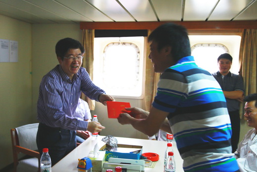 船長(zhǎng)代表全體船員對(duì)公司領(lǐng)導(dǎo)的慰問(wèn)和關(guān)懷表示真誠(chéng)的謝意,并表態(tài)會(huì)以身作則、團(tuán)結(jié)全體船員,努力工作,保安全、抓管理,做好降本增效,完成公司交給的任務(wù)。