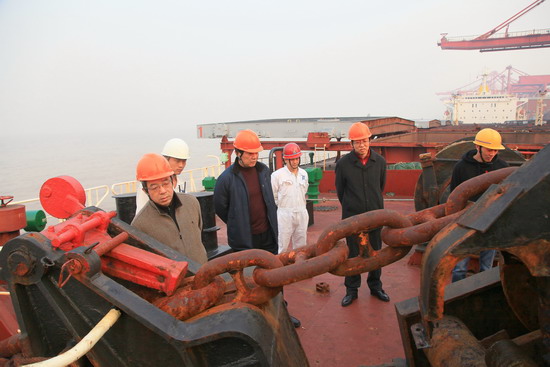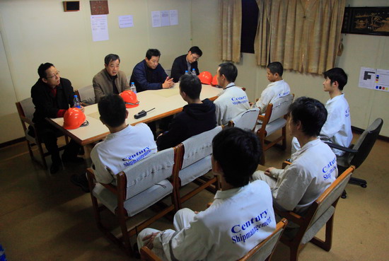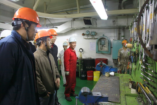 公司領導在船長、輪機長的陪同下對船舶駕駛臺、餐廳、機艙和主甲板等進行了檢查,隨后召開高級船員座談會,交流船舶生產安全、自修保養等工作,并對船上工作提出要求:一是要高度重視安全生產,牢固樹立“安全第一”思想,緊繃安全這根弦。二是要抓好季節性安全工作,嚴格各項操作規程,加強人身安全防范意識,防止各類工傷事故發生;三是要做好設備維修保養工作,確保船舶設備的正常運行,尤其要保證船舶應急設備和船舶電氣設備時刻處于良好狀態,確保船舶適航適貨,提高船舶營運效率;四是要再接再厲,在新的一年里千方百計為提高經濟效益作貢獻。