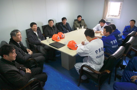 2014年1月13日,公司領導沈炳榮、褚敏、徐海良、黃敏輝在有關部門負責人的陪同下,來到靠泊在鎮海電廠碼頭作業的“明州57”輪進行工作檢查和指導,并向一線船員送去新年慰問。