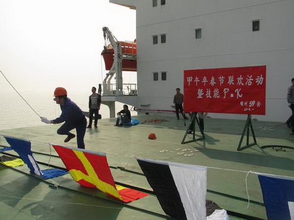 以“安全、親情、和諧”為主題,旨在增加船員間的和諧友誼,提高工作技能水平,確保安全生產,增添歡樂祥和的新年氛圍,感受濃濃鄉情年味的“明州59”輪馬年迎春聯歡暨船員技能比武,于2014年1月28日至2月16日在船上圓滿舉行。