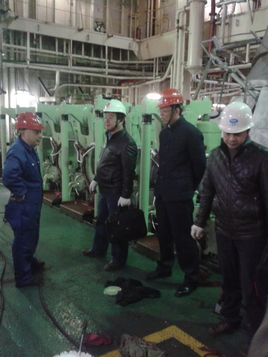 董總一行上船后,在船舶領(lǐng)導(dǎo)的陪同下對(duì)船舶進(jìn)行了檢查,并與船上高級(jí)船員進(jìn)行了座談。董總結(jié)合當(dāng)前公司安全形勢(shì),對(duì)“明州68”輪提出了要求,一是要轉(zhuǎn)變安全理念,把安全放在首要位置,時(shí)刻繃緊安全這根弦,嚴(yán)格遵守各項(xiàng)操作規(guī)程,杜絕“三違”;二是要高度重視新的東京備忘錄檢查機(jī)制對(duì)船舶接受PSC檢查帶來(lái)的影響,要進(jìn)一步加強(qiáng)維護(hù)保養(yǎng)力度,細(xì)化養(yǎng)護(hù)項(xiàng)目,確保船舶設(shè)備處于適規(guī)適航;三是要在船舶開(kāi)展正風(fēng)肅紀(jì)活動(dòng),嚴(yán)格遵守各項(xiàng)規(guī)章制度,保持良好的船風(fēng)船貌。