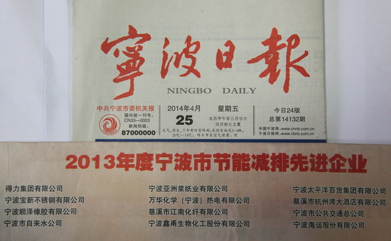 近幾年來,公司認真貫徹落實國家節能減排政策,積極響應交通運輸部、省交通運輸廳和寧波市政府關于節能減排工作的部署,充分發揮團隊管理優勢,在管理節能、科技節能、航海節能方面大膽創新、勇于探索,取得了顯著成績。近日,被寧波市人民政府授予2013年度寧波市節能減排先進企業。