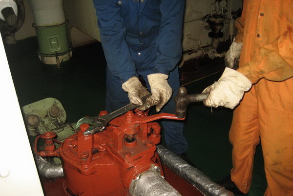 1020,船上又報告:“在測量水艙時,發(fā)現(xiàn)第一頂邊水艙右側(cè)水位達(dá)1.0m,并有增加現(xiàn)象,懷疑舷側(cè)列板原受損處出現(xiàn)裂縫。”應(yīng)急小組立即查閱“明州68”輪總布置圖、艙容圖、船體結(jié)構(gòu)圖,初步確定裂縫位置和艙體狀況,指示船舶:“用掃艙泵對第一頂邊艙右側(cè)進(jìn)行排水”、“擇機(jī)進(jìn)行船舶調(diào)頭,待搖擺減輕派員進(jìn)艙檢查”等。在裂縫位置正式確定后,公司啟動ERS與中國船級社聯(lián)系,商定臨時修理方案,并通知船舶實(shí)施。