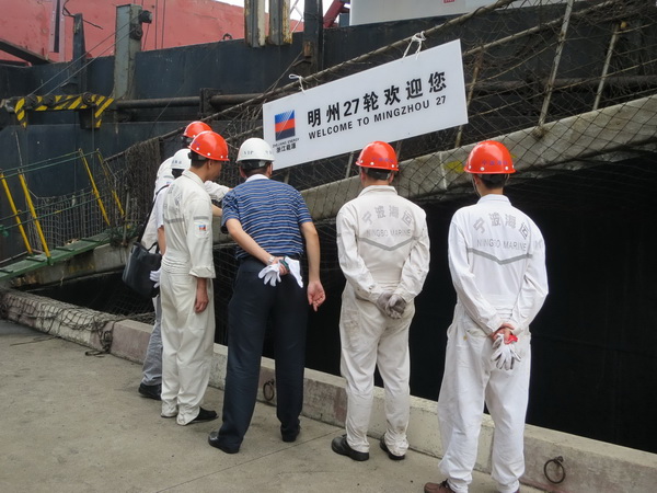 8月12日——25日,“打非治違”專項行動督查組在公司領(lǐng)導董軍、袁一堯、蔣海良帶領(lǐng)下分別對“明州20”輪、“明州27”輪、“明州76”輪、“明州78”輪、“明州201”輪、“明州25”輪、“明州62”輪和“明州59”輪進行督查。督查組對每艘船的舷梯、安全網(wǎng)的架設(shè)提出了規(guī)范要求。