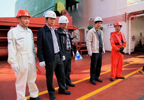 2014年11月26日,公司董事長褚敏帶領安全檢查組成員趕赴樂清電廠碼頭,對準備卸貨作業的安全聯系點船舶——“明州76”輪進行了秋冬季安全管理工作檢查。