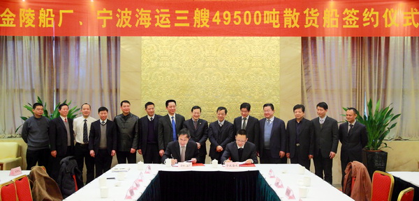 2015年1月30日,公司與中國長江航運(yùn)集團(tuán)南京金陵船廠在南京簽署了3艘 49500載重噸散貨船建造合同。浙能集團(tuán)煤炭及運(yùn)輸分公司副總經(jīng)理安駿、寧波海運(yùn)集團(tuán)領(lǐng)導(dǎo)沈炳榮、褚敏、董軍、蔣海良、徐海良,以及浙能集團(tuán)物流管理中心、金陵船廠、中國船級(jí)社江蘇分社、上海船舶設(shè)計(jì)研究院等有關(guān)領(lǐng)導(dǎo)出席并見證了合同簽字儀式。