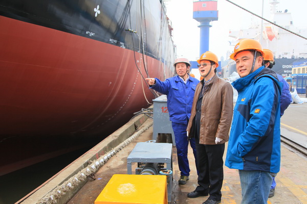 簽字當(dāng)天,出席簽約儀式的領(lǐng)導(dǎo)在廠方有關(guān)人員的陪同下,實(shí)地參觀、考察了中國長江航運(yùn)集團(tuán)南京金陵船廠下屬二個(gè)造船基地——江蘇金陵船舶有限責(zé)任公司和南京金陵船廠。