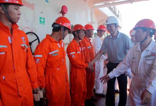 上船后,公司領(lǐng)導(dǎo)深入50多度的機(jī)艙間,陣陣熱浪撲面而來(lái),汗水立刻滲透了衣衫。公司領(lǐng)導(dǎo)仔細(xì)檢查了關(guān)鍵性設(shè)備和消防設(shè)施的維護(hù)保養(yǎng)記錄情況,看到仍穿厚工作服的船員忙碌工作著,握住他們的手說(shuō):“你們辛苦了,我們代表公司向你們表示慰問(wèn)。”
