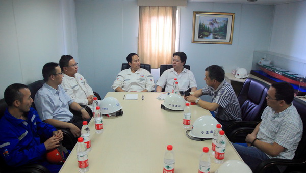 上船后,公司領導深入甲板、機艙檢查,重點了解了該輪安裝電子注油器、燃油均質機后的節能效果,并組織召開了高級船員座談會。“明州57”輪船長匯報了該輪今年以來的安全生產經營情況,以及貫徹公司及上級單位的相關文件精神,指出日常工作中的困難及采取的對策和措施,并提出需要公司予以協調解決的事宜。公司領導認真聽取匯報,不時地對“明州57”輪安全生產經營工作及所采取的措施進行點評,現場解決相應的困難和問題。