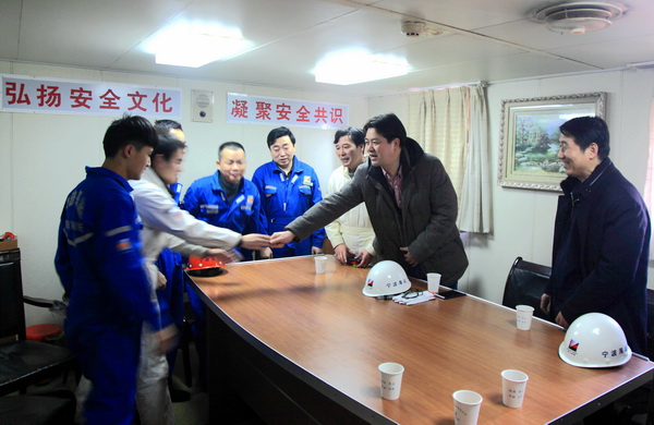 2016年2月6日上午1020時,當“明州62”輪徐徐靠上舟山老塘山碼頭后,寧波海運集團總經理、公司董事長陳明東、寧波海運集團紀委書記、公司監事會主席徐海良在有關部門負責人的陪同下登船慰問,向“明州62”輪全體船員拜年,并向節日期間仍奮戰在海運第一線的全體干部職工及所有家屬表示新春的問候,致以崇高的敬意!