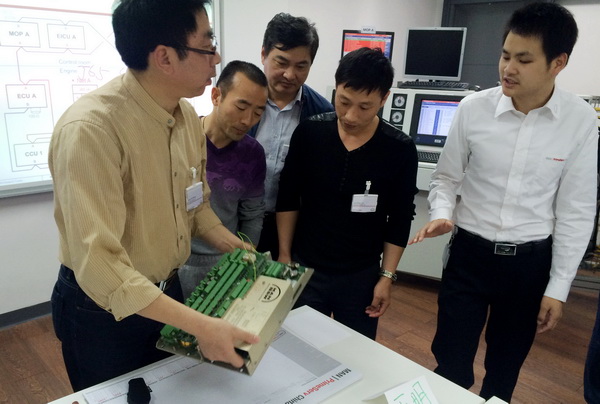為認(rèn)真貫徹執(zhí)行國(guó)家節(jié)能減排政策,不斷提升企業(yè)經(jīng)營(yíng)競(jìng)爭(zhēng)力,公司結(jié)合新造船項(xiàng)目的推進(jìn)實(shí)施,在新建造的49500噸散貨船中選擇了當(dāng)前國(guó)際上技術(shù)、環(huán)保、耗油率等方面最先進(jìn)的ME型主機(jī)。該機(jī)型的控制系統(tǒng)與公司現(xiàn)有船舶普遍使用的MC機(jī)型有非常大的區(qū)別,以往傳統(tǒng)管理經(jīng)驗(yàn)已不能覆蓋電噴新主機(jī)的要求。隨著新造船交付時(shí)間日益臨近,為適應(yīng)新機(jī)型管理要求,提升相關(guān)管理和操作人員能力,4月18日-22日和25日-29日,公司分兩期組織新造船接船人員及機(jī)務(wù)管理人員共15人到MAN公司上海培訓(xùn)中心進(jìn)行ME型主機(jī)(電噴機(jī))相關(guān)課程培訓(xùn)。
