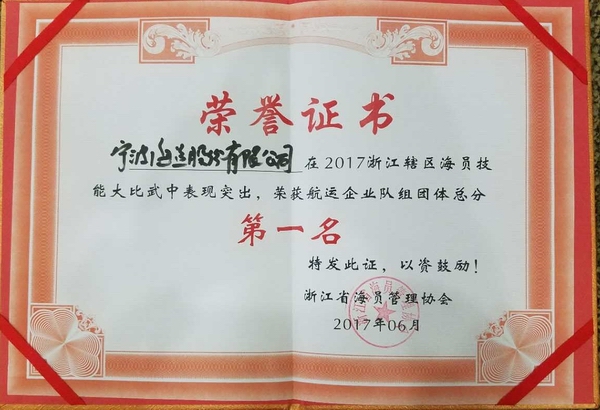 公司隊在浙江轄區海員技能大比武中榮獲團體總分第一名